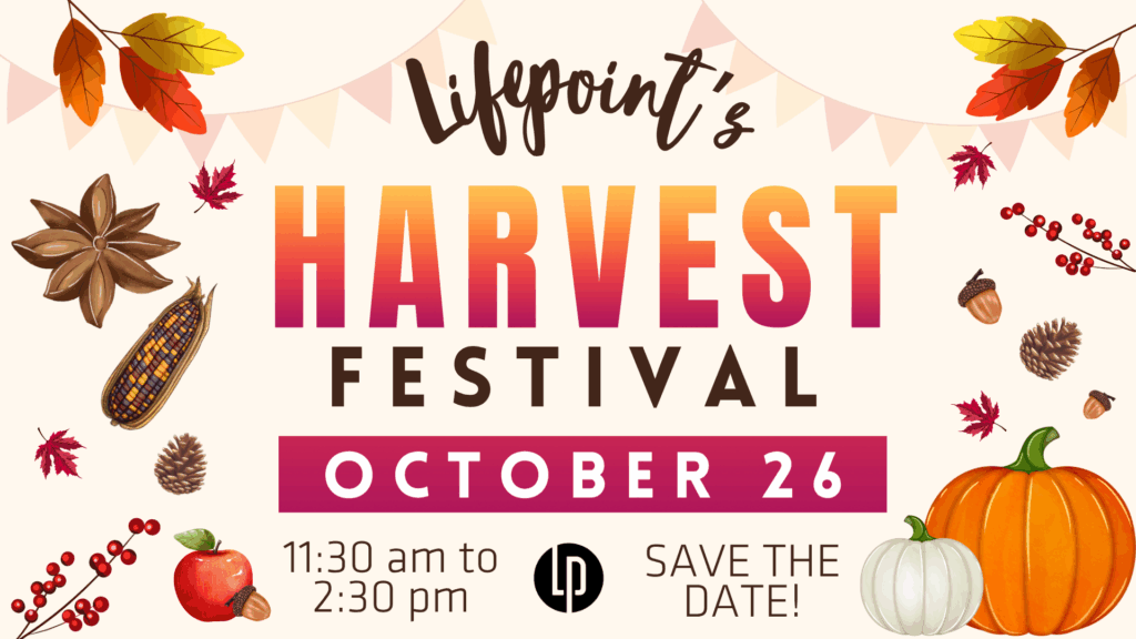 Fall is here, and we’re celebrating with a day full of fun for the whole family! Join us for our morning service at 10:00 AM and then stay for our annual Harvest Festival — a community event packed with food, fall activities, friendly faces, and something for everyone to enjoy. Bring your friends and family. Everyone is welcome!