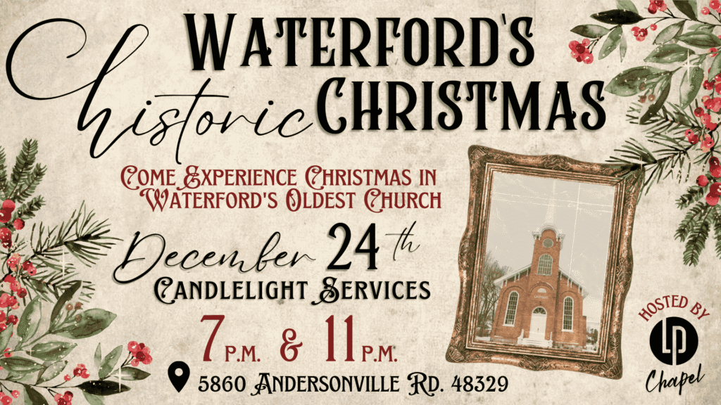 Step into Christmas Eve the way it was meant to be – quiet, warm, and timeless. Join us in Waterford’s oldest church for an evening of Christmas jazz-inspired music from clarinetist Dave Bennett and keyboardist Sean Ginyard, classic carols, and a heartfelt Christmas message. We’ll end the night with a candlelight moment and the ringing of the old church bell as we reflect on the meaning of Christmas. All are welcome. Come experience the beauty of the season in a place filled with historic charm.